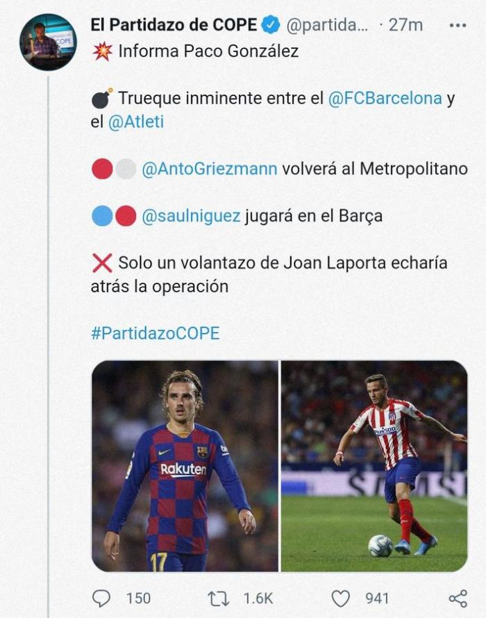 24直播网7月15日讯 ,据科贝电台消息,马竞就格子和萨乌尔互换一事达成协议。