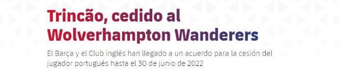 特林康就将从巴萨租借加盟狼队,租期一年,合同中包含买断条款。