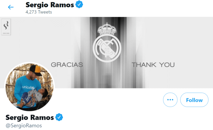 24直播网讯皇马队长拉莫斯今天更新了自己的推特和Facebook主页封面,表达了自己对皇马俱乐部的感谢之情。