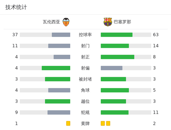 最终全场比赛结束,瓦伦西亚1-1巴塞罗那。