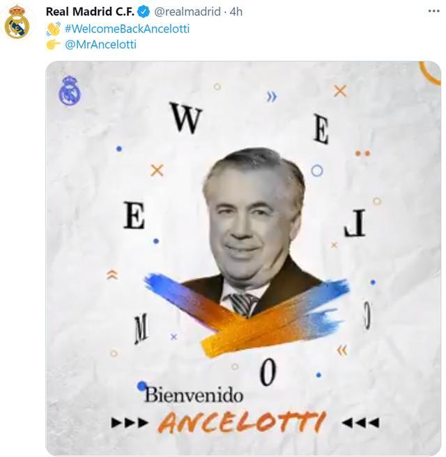 24直播网讯 据皇马官方消息,安切洛蒂回归球队,签约至2024年。