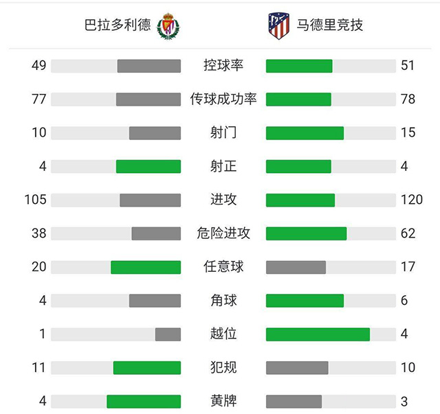 全场比赛结束,马德里竞技客场2-1逆转巴拉多利德。