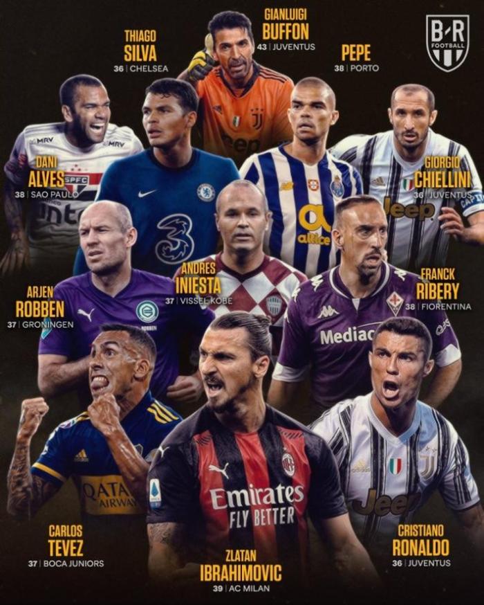 前锋:特维斯(37岁,博卡青年)、伊布拉希莫维奇(39岁,AC米兰)、C罗(36岁,尤文)