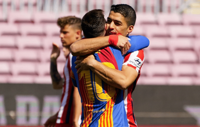 本场比赛巴萨首发阵容:特尔施特根、德斯特、皮克、朗格莱、明格萨、阿尔巴、布斯克茨、佩德里、德容、格列兹曼、梅西。马竞首发:奥布拉克、埃尔莫索、费利佩、萨维奇、特里皮尔、马科斯-略伦特、科克、卡拉斯科、勒马尔、科雷亚、苏亚雷斯。本场比赛前梅西和苏亚雷斯深情相拥,两人相谈甚欢。