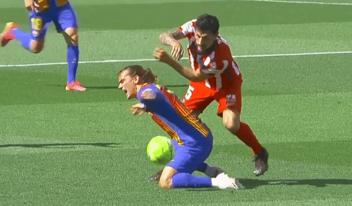 上半场的比赛开始第2分钟,勒马尔突破到禁区,一脚低射角度太正被特尔施特根没收,第9分钟苏亚雷斯任意球轰门,角度太正被没收,比赛进行到第12分钟的时候,马德里竞技遭遇到了伤病打击,勒马尔受伤无法坚持比赛,萨乌尔替补登场。比赛第18分钟马德里竞技打出了一次十分有威胁的进攻,萨乌尔送出直塞球,埃尔莫索跟进将球横扫到禁区,朗格莱赶在科雷亚之前将球破坏出底线,巴萨罗那大部分时间都占据了控球权,但是他们没有创造出太好的机会,比赛踢了27分钟巴萨0射门,第28分钟巴萨完成了本场比赛的第一脚射门,格列兹曼外围一脚远射被对手门将没收。