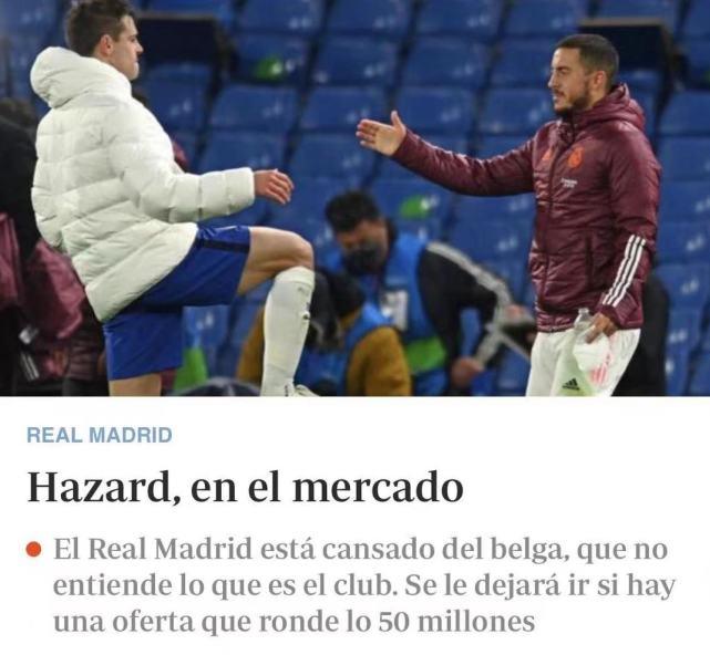 据悉,如果收到5000万欧元左右的报价,皇马就会出售阿扎尔。2019年夏天,皇马花费了1.15亿欧元引进阿扎尔,如果他们真的以5000万欧元的价格出售比利时人,将面临“四折抛售”的尴尬。