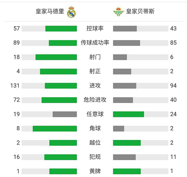 全场比赛结束,皇马主场0-0战平贝蒂斯。