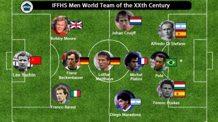 24直播网讯 国际足球历史统计联合会(IFFHS)日前评选了20世纪(1901-2000)足坛最佳阵容,由贝利和马拉多纳领衔。