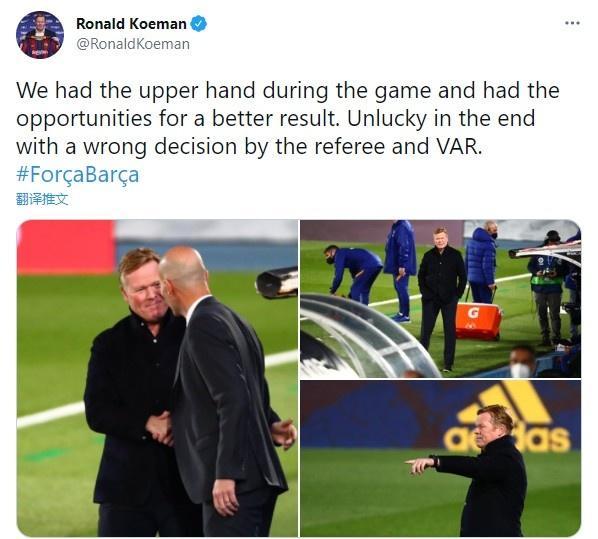 24直播网讯今天凌晨,巴萨1-2落败,本赛季遭到皇马双杀。赛后,巴萨主帅科曼更新社媒,点评了比赛,并对裁判的判罚表达了不满。