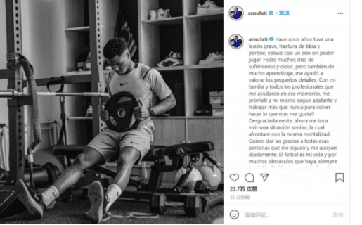 已经上任的拉波尔塔此前去看望了法蒂,给他送上了祝福,当时法蒂的恢复预期是4个月,但是康复进展没有达到预期效果。而法蒂也在社交媒体上发长文感谢了所有人的鼓励和支持,同时表示自己保证会全力配合,争取早日康复的。可见法蒂的心态还是很好的,这也有利于他伤病的恢复情况。