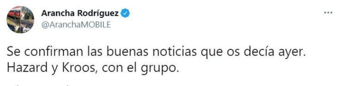 24直播网4月3日讯 据科贝电台记者Arancha Rodríguez报道,阿扎尔和克罗斯今日参加了皇马合练。