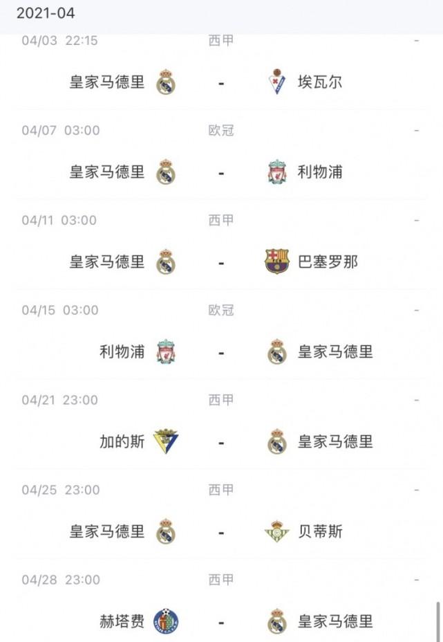 根据赛程安排,皇马将在3日对阵埃瓦尔,7日凌晨他们将迎来欧冠1/4决赛首回合与利物浦的比赛,4月11日国家德比,4月15日再战利物浦,这些关键战役拉莫斯可能都无法参加。