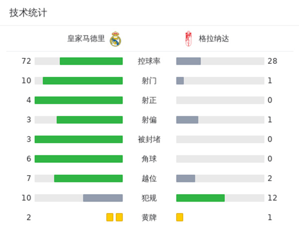 第57分钟,皇马突然加快进攻节奏,何塞卢做球,迪亚斯禁区内倒三角传球,贝林厄姆顺势攻门被安德烈-费雷拉扑出,罗德里戈补射破门,皇马2-0格拉纳达。