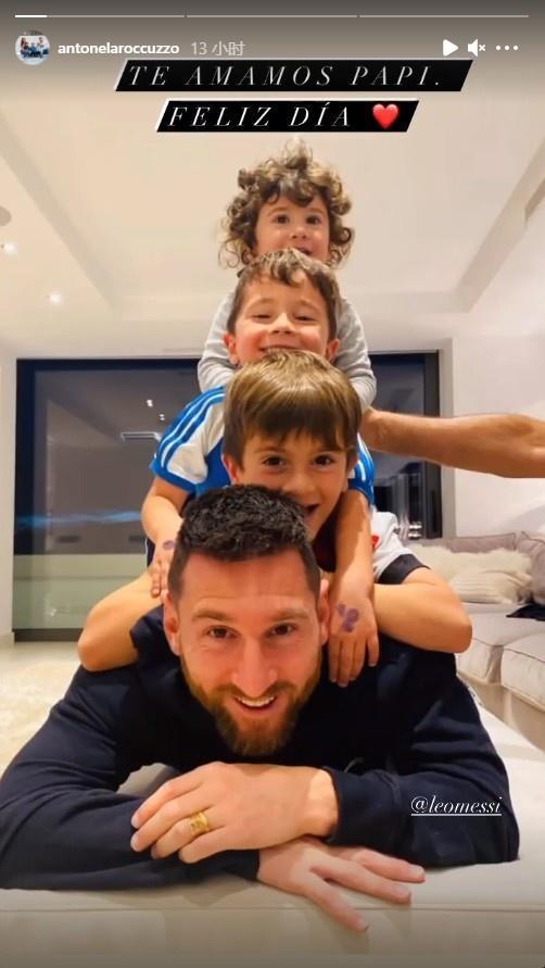 安东内拉写道:“今天是开心快乐的一天,我们爱你呀,爸爸❤️。”