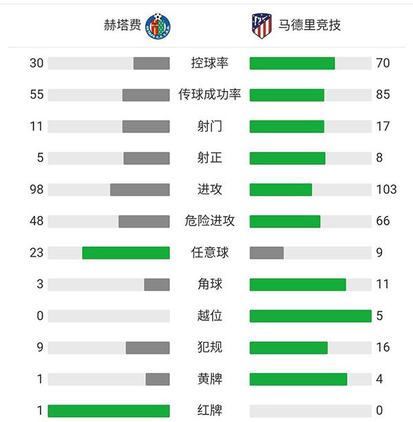 全场比赛结束,马德里竞技0比0战平赫塔菲。在巴萨少赛一场的情况下继续以6分优势领跑积分榜。