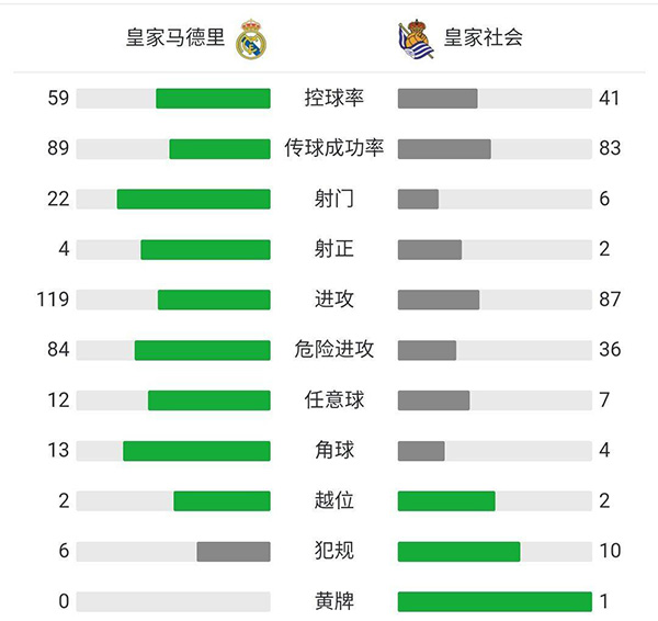 查看: 皇家马德里vs皇家社会 全场录像技术统计: