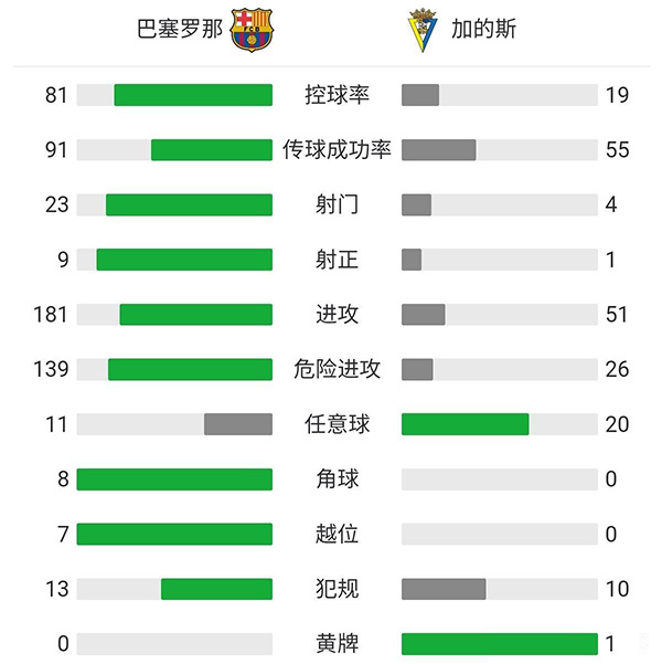 查看:巴塞罗那vs加的斯 全场录像技术统计: