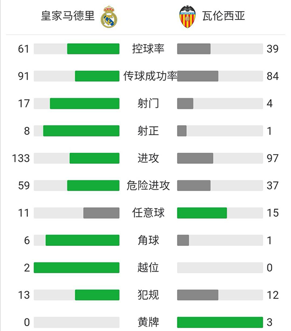 查看:皇家马德里vs瓦伦西亚 全场录像技术统计: