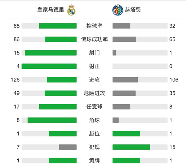 查看:皇家马德里vs赫塔费 全场录像技术统计: