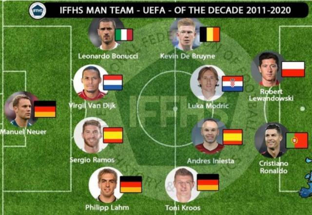24直播网2月03日讯 国际足球历史和统计联合会(IFFHS)日前评选出了2011-2020年的欧洲最佳阵容,C罗和莱万领衔。