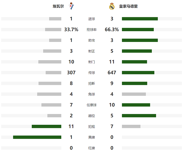 查看:埃瓦尔vs皇家马德里 全场录像技术统计: