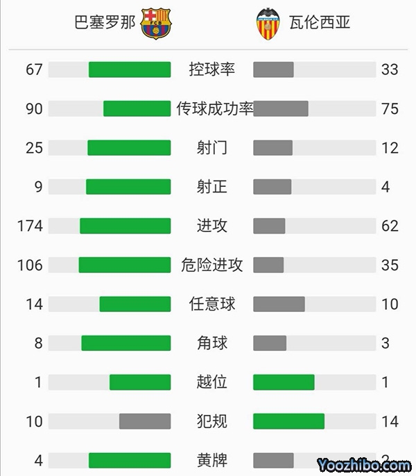 查看:巴塞罗那vs瓦伦西亚 全场录像 技术统计: