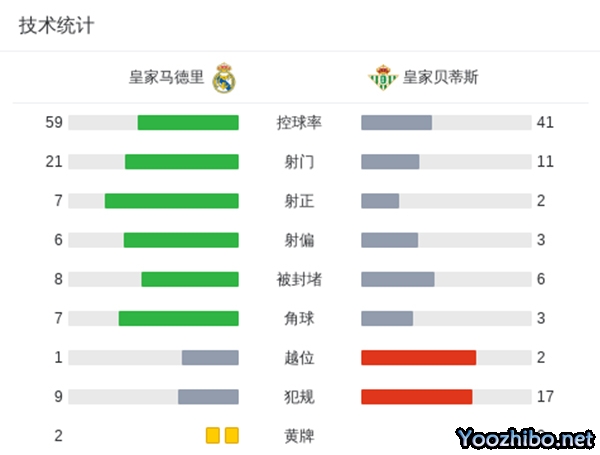 最终,皇马2-0战胜贝蒂斯。
