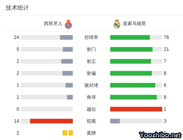 最终皇马0-1西班牙人。积分榜方面,皇马只有1分领跑积分榜。