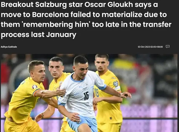 24直播网10月03日讯 萨尔茨堡球员奥斯卡-格鲁克透露,巴塞罗那错过了在2023年1月转会窗口签下他的机会。