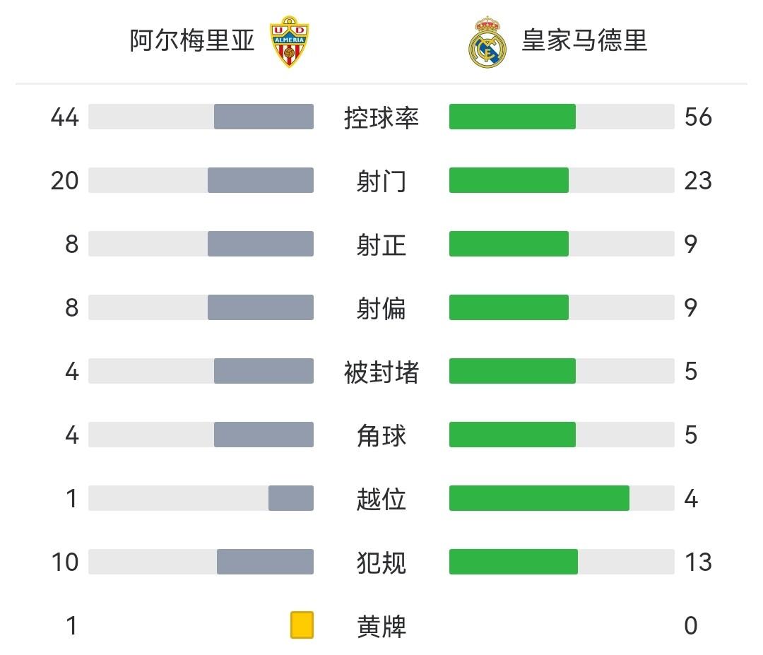最终全场比赛结束,皇马3-1逆转客胜阿尔梅里亚。