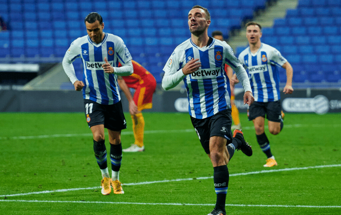 24直播网讯西乙联赛31轮过后,西班牙人重回榜首,找回了半程冠军应有的火热状态,最近取得了两连胜,分别以4-0战胜洛格罗涅斯、3-1战胜卡斯特利翁,从而连超阿尔梅里亚和马略卡登上了积分榜榜首的位置。进入到4月,西班牙人将会迎来4场硬仗,先后对阵富恩拉夫拉达、莱加内斯、阿尔梅里亚、拉斯帕尔马斯,其中莱加内斯和阿尔梅里亚是冲甲死敌,富恩拉夫拉达和拉斯帕尔马斯则双双保持西班牙人本赛季的不败。