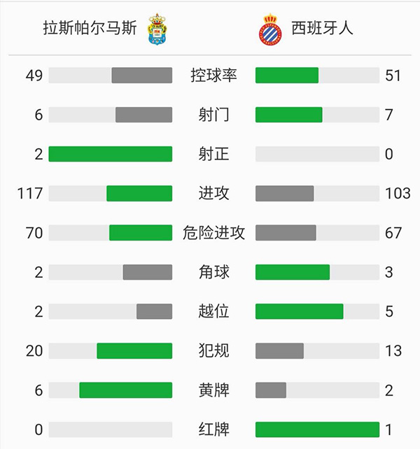 查看:拉斯帕尔马斯vs西班牙人 全场录像技术统计: