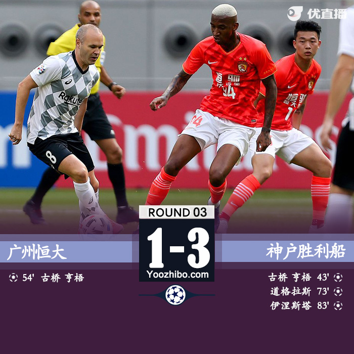 24直播网讯:北京时间11月25日晚,亚冠小组赛G组赛事继续进行,广州恒大1-3负于神户胜利船,恒大2战仅拿到1分。开场不久张琳芃因伤退赛;第44分钟,伊涅斯塔送出助攻,古桥亨梧包抄破门;第55分钟,神户乌龙球助恒大扳平;第74分钟,替补登场的道格拉斯助神户再度超出;第82分钟,艾克森破门被误判为越位;1分钟后伊涅斯塔入球为神户锁定胜局。