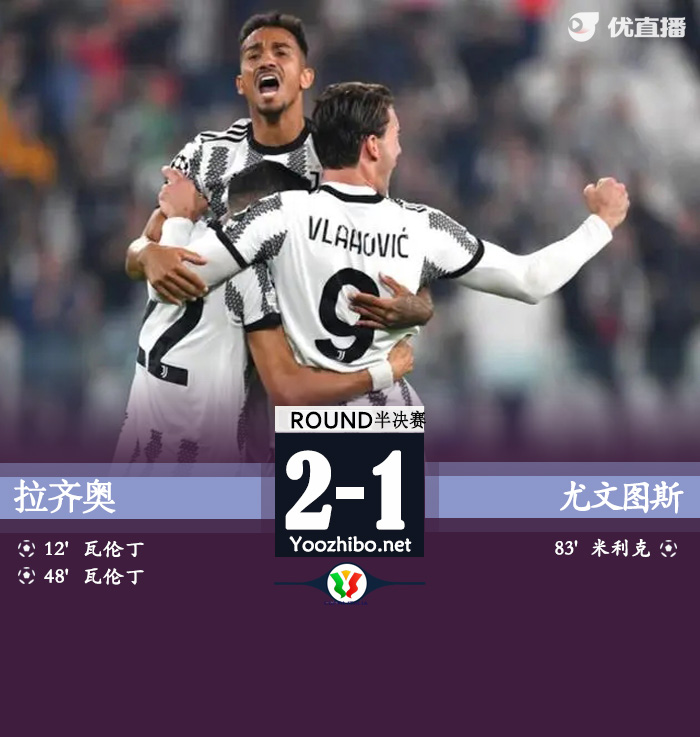 24直播网讯:北京时间4月24日意大利杯 半决赛次回合,拉齐奥主场对阵尤文图斯。上半场卡斯特利亚诺斯头球破门,弗拉霍维奇禁区打门被扑,佩林扑单刀,下半场卡斯特利亚诺斯梅开二度,米利克推射空门得分。两回合总比分尤文3-2淘汰拉齐奥晋级决赛。