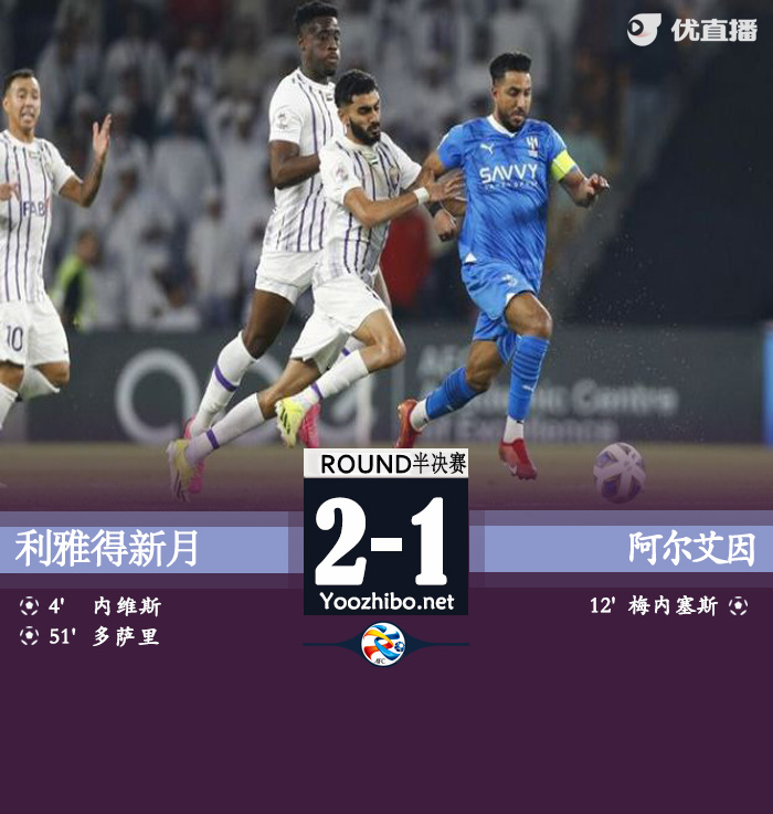 最终艾因两回合总比分5-4淘汰利雅得新月。