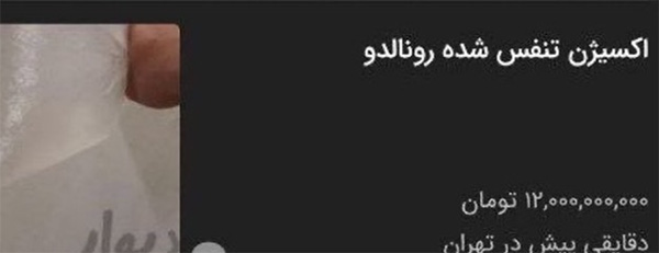 因为C罗的到来,当地围绕着C罗的周边场边的价格也暴涨,如果是是球衣、围巾之类的还可以理解,没想到居然还有伊朗的球迷在出售C罗呼吸的空气,而且价格非常昂贵,堪称是迷之操作。