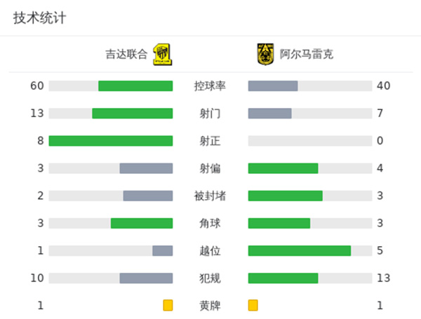 全场比赛结束,吉达联合3-0阿尔马雷克。