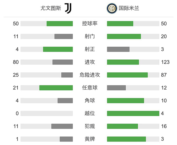 查看:尤文图斯vs国际米兰 全场录像技术统计: