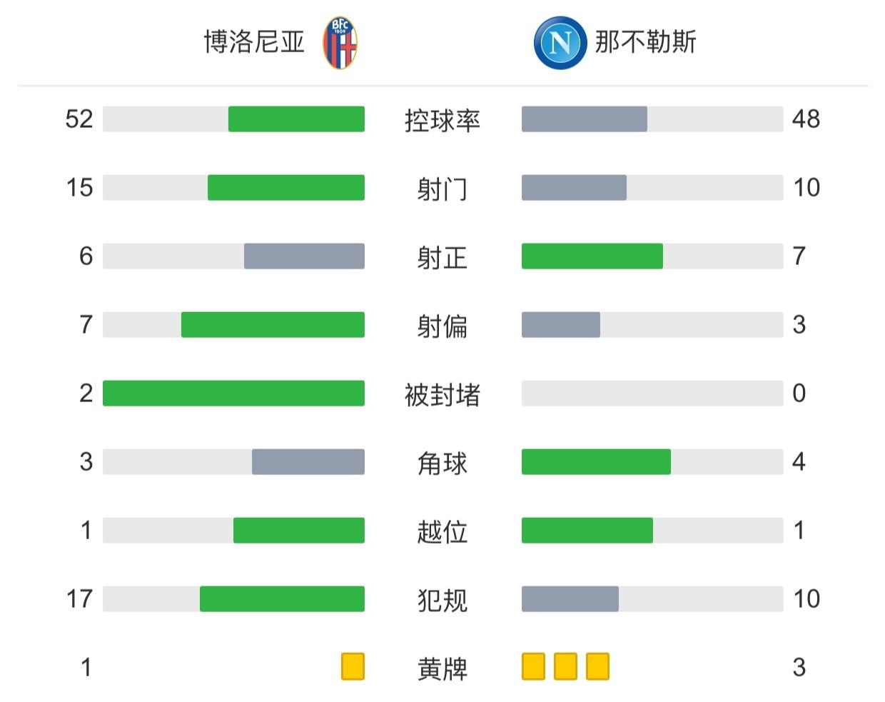 全场比赛结束,那不勒斯客场2-2战平博洛尼亚。
