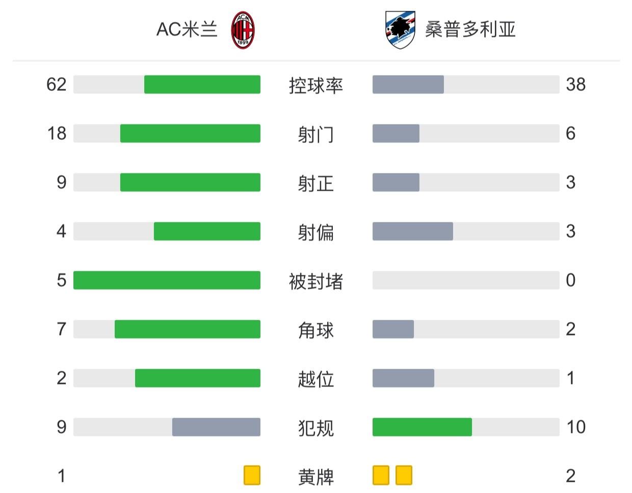 关键事件: 第9分钟,迪亚斯挑传,莱奥获得单刀球机会,他选择右脚推射,这球拉瓦利亚无能为力,AC米兰1-0桑普多利亚。