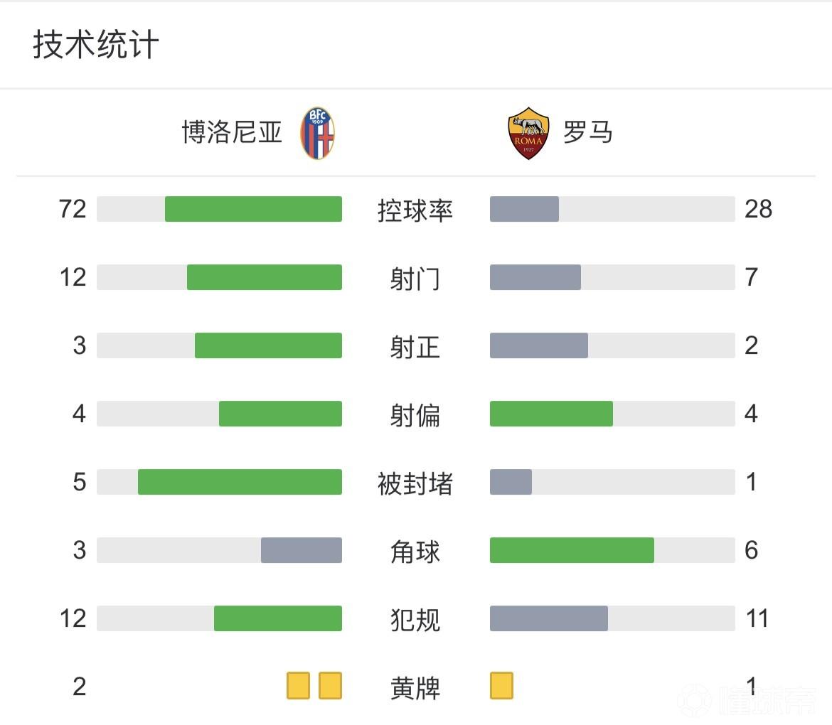 全场比赛结束,罗马0-0博洛尼亚。