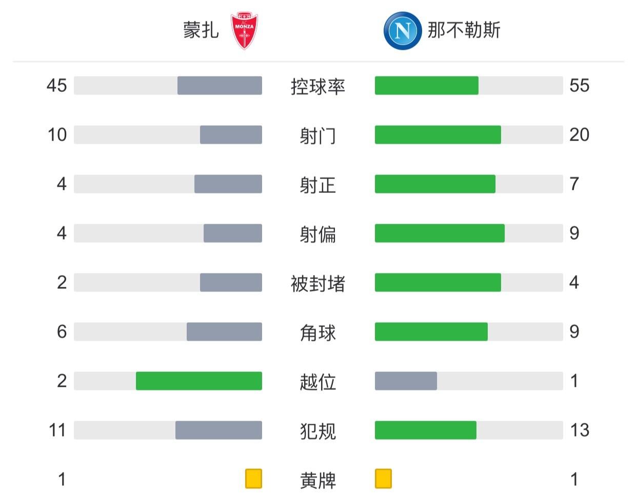 关键事件: 第18分钟,蒙扎取得领先,他们从左路发动攻势,佩西纳面对门将冷静横传,丹尼-莫塔插上后点推射破门,蒙扎1-0领先那不勒斯。