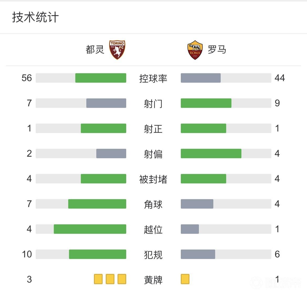 全场结束,罗马1-0都灵。本场过后,罗马积53分,超越米兰双雄来到积分榜第3位。