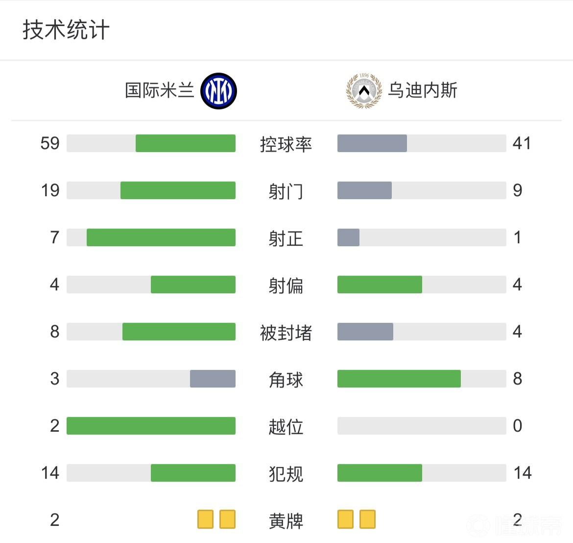 最终国际米兰主场3-1战胜乌迪内斯。