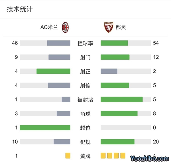 全场比赛结束,最终米兰1-0击败都灵!