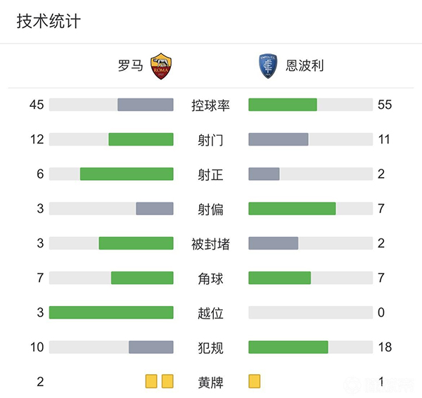 全场比赛结束,最终罗马主场2-0击败恩波利。