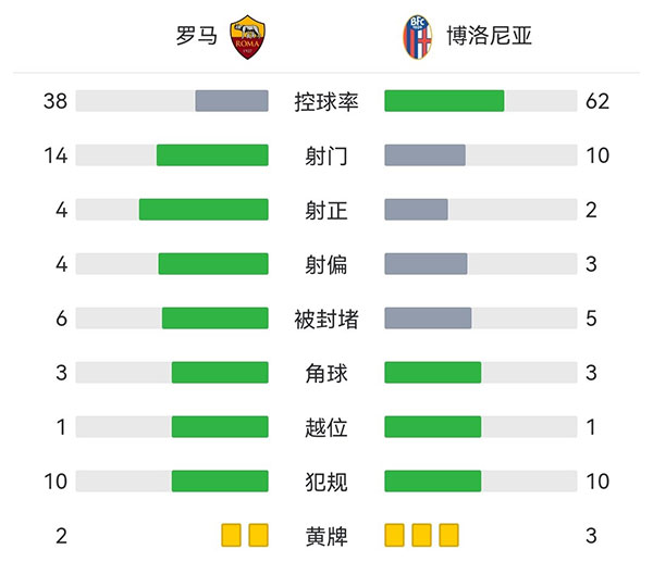 全场比赛结束,最终罗马1-0博洛尼亚。
