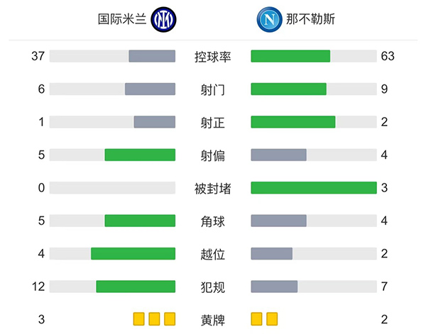 全场比赛结束,最终国际米兰主场1-0击败那不勒斯。
