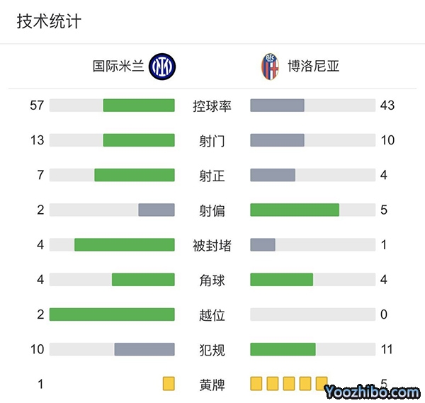 全场比赛结束,最终国米6-1击败博洛尼亚。