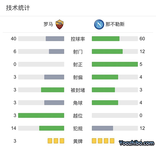 全场结束,罗马主场0-1不敌那不勒斯。